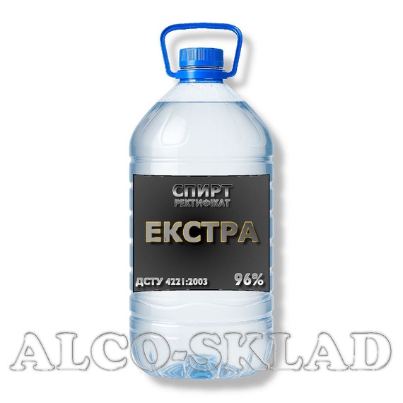 Харчовий спирт Екстра 96% — чиста база для купажу горілки та настоянок. ПЕТ 5 л, мінімальне замовлення 5 л, відправка Новою поштою за 1–2 дні. Відповідає ДСТУ 4221:2003.
